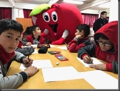 Con la intención de llevar además un mensaje de vida saludable, el corpóreo del Sistema Elige Vivir Sano (Vitalito) entregó frutas a los niños y se sacó fotografías con los estudiantes y autoridades académicas del establecimiento, ubicado en el sector centro alto de la ciudad y cuya matrícula corresponde en un 30% a menores de origen extranjero.