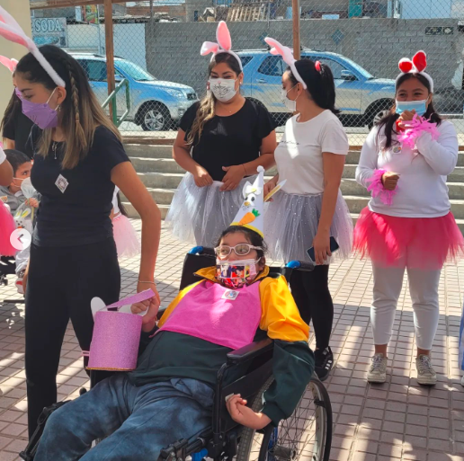 Con dulces, música y baile entretenido los más pequeños de La Agrupación de Familiares y Amigos de Niños con Discapacidad “La Nueva Esperanza”, vivieron una nueva versión de Semana Santa. El evento comenzó con la entrega de canastos con huevos de chocolate, música infantil alusiva a la fecha, finalizando la jornada con una presentación sobre la esperanza, realizada por estudiantes de la carrera Técnico en Educación Especial de Santo Tomás.
