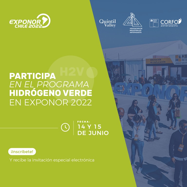 En este contexto, la agencia de innovación Quintil Valley, con el apoyo del Comité Corfo Antofagasta, estará a cargo de la organización de varias actividades relacionadas al hidrógeno verde (H2V) durante el 14 y 15 de junio.