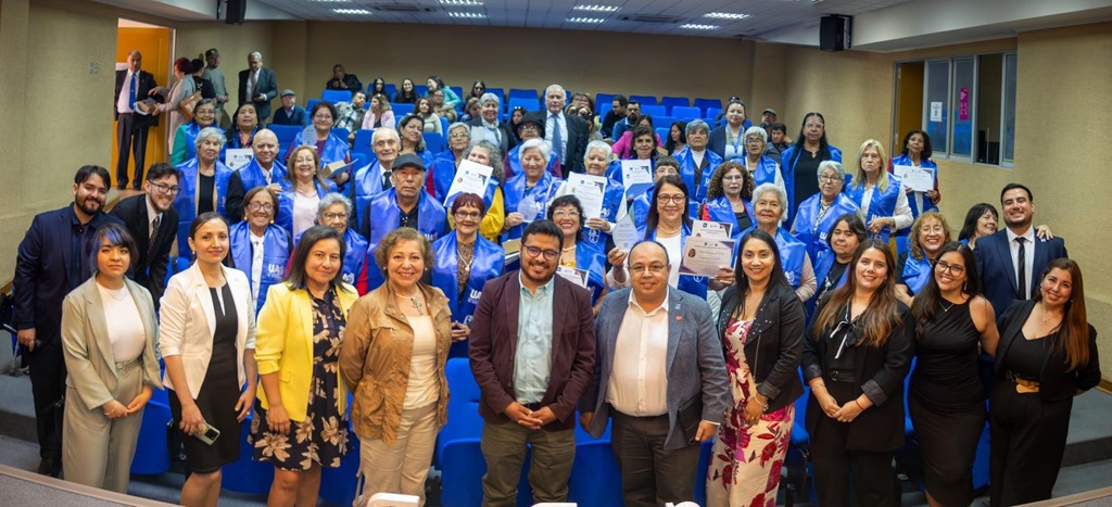 Con diversas presentaciones artísticas se llevó a cabo en el campus Coloso de la UA la ceremonia de egreso de 38 usuarios y usuarias de la generación 2023-2024 del Centro Diurno Referencial (CDR) del adulto mayor que administra la Universidad de Antofagasta, tras finalizar el proceso de intervención que realizó un equipo profesional multidisciplinario en el ámbito biomédico, psicológico y social, con el objetivo que las personas mantengan y mejoren su autonomía en la vida cotidiana, a través de talleres y actividades terapéuticas, lúdicas y recreativas.
